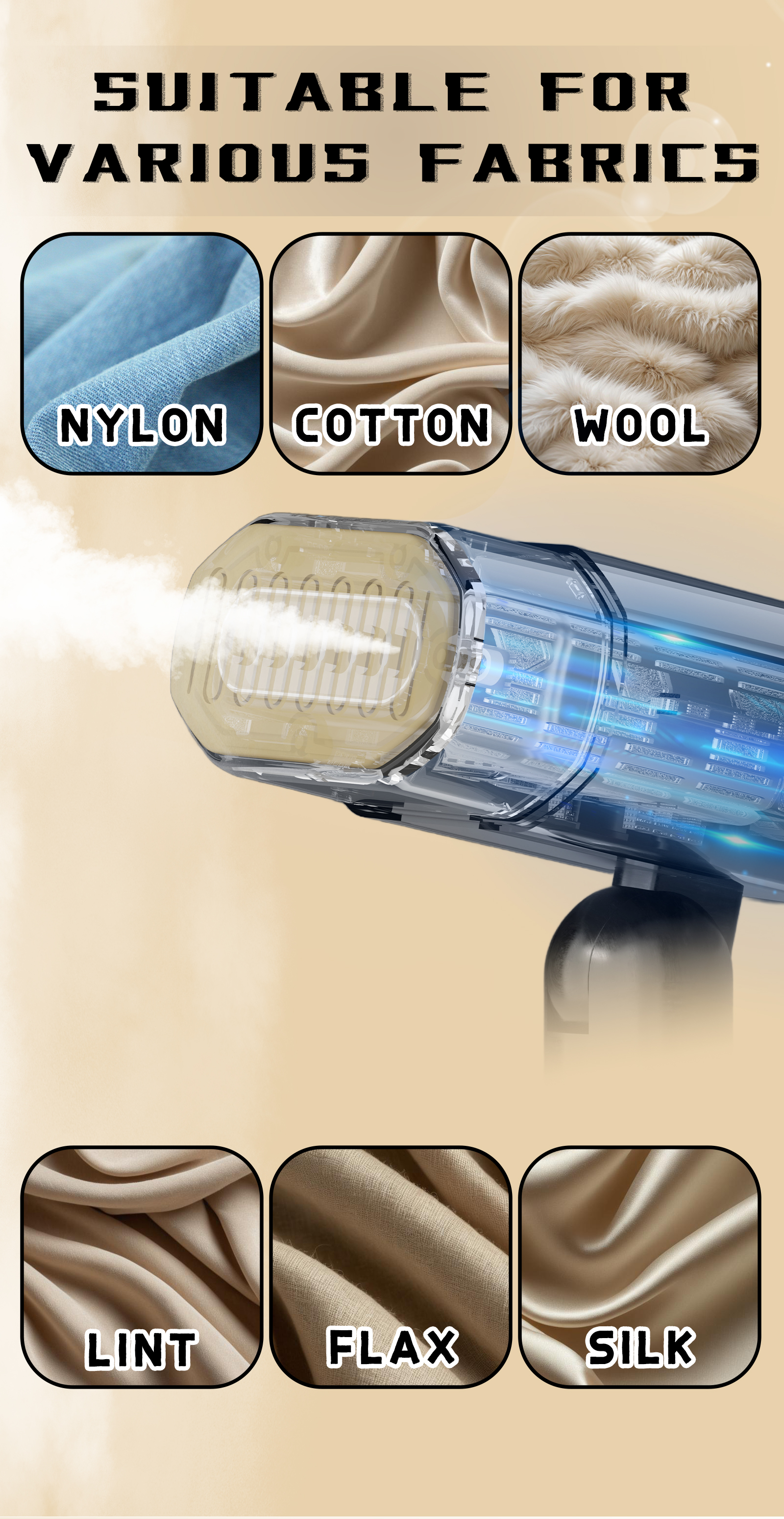 • Powerful clothing steamer, portable handheld fabric and clothing steamer, equipped with dust remover and fabric brush, ultra fast heating, powerful wrinkle removal, household portable