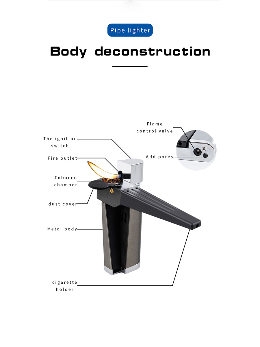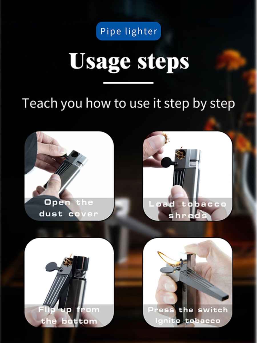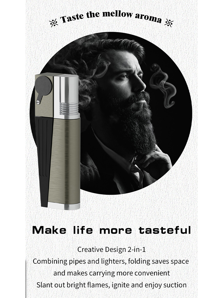 • Pipe lighter, refillable lighter, 2-in-1 folding lighter, adjustable flame and refillable lighter, with gift box containing refilling aid (butane not included)