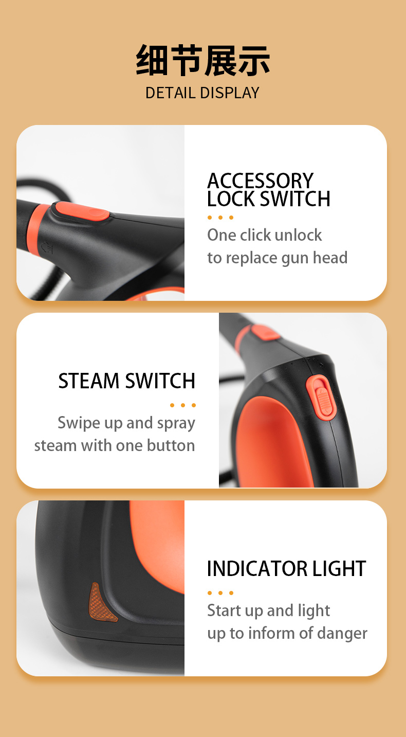 Handheld portable steam cleaner, suitable for steam cleaning of tiles, crevices, windows, bathrooms, kitchens, and fabrics